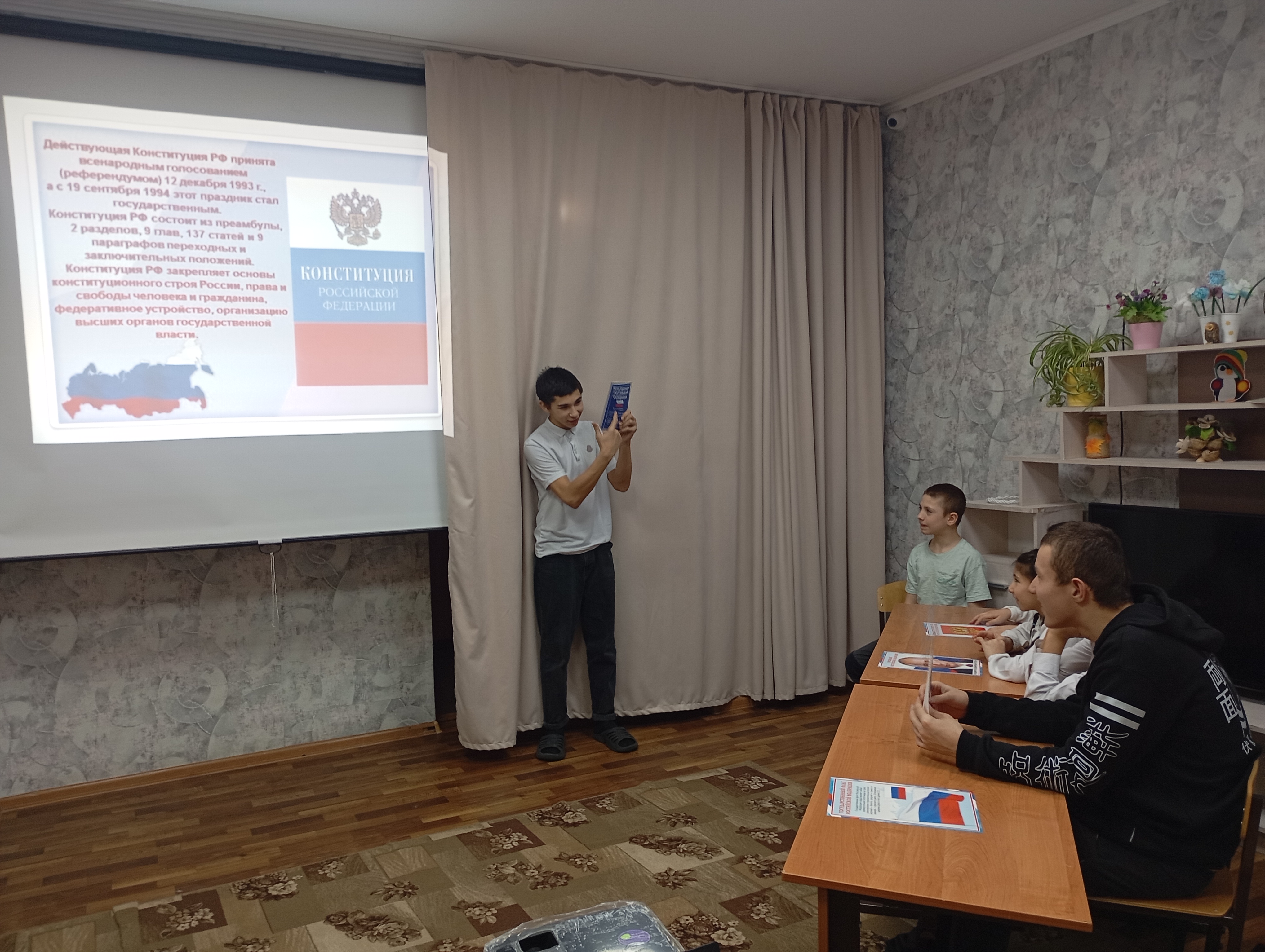 12 декабря, с целью воспитания уважения к Конституции РФ, государственным символам, правам и обязанностям граждан, чувства патриотизма, для воспитанников было проведено занятие "День Конституции".Ребята узнали, что такое Конституция РФ, для чего она нужна, как создавалась и принималась Конституция РФ. Живо проходило обсуждение некоторых прав гражданина РФ, таких как, право на жизнь, право на труд, право на образование, право на охрану здоровья. Ребята вспомнили Государственные символы РФ и трактования элементов герба, флага. Пробовали применить Конституцию РФ к сказкам, определить, какое право нарушено в сказках " Гуси-лебеди", "Снежная Королева", "Лиса и заяц", и какими правами воспользовались герои сказок "Репка", "По щучьему велению". В конце занятия, традиционно была проведена рефлексия и ребята поделились тем, что им показалось важным, что они поняли и почувствовали.